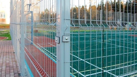 Панели ограждения выполнены из оцинкованных прутков толщиной 5 мм (вертикальные) и 6 мм (горизонтальные) с последующей окраской. Необходимая жесткость панели 2D достигается применением двух горизонтальных прутков. Для установки панелей рекомендованы столбы 62х55 или 90х55. Столбы изготовлены из оцинкованной стали, шов профилированный с замком seam-lock (без применения сварки) усиленным клинч-системой.