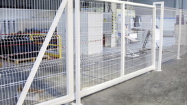 Ворота и калитки панельных ограждений изготовлены из оцинкованного стального прутка ГОСТ 3282 и рамки, выполненной из оцинкованной стали. Перед покраской калитки и ворота проходят 9 стадий подготовки, в том числе нанесение конверсионного слоя OXSILAN. Это позволяет гарантировать, что в течение 10 лет ворота и калитки сохранят свой первоначальный вид.